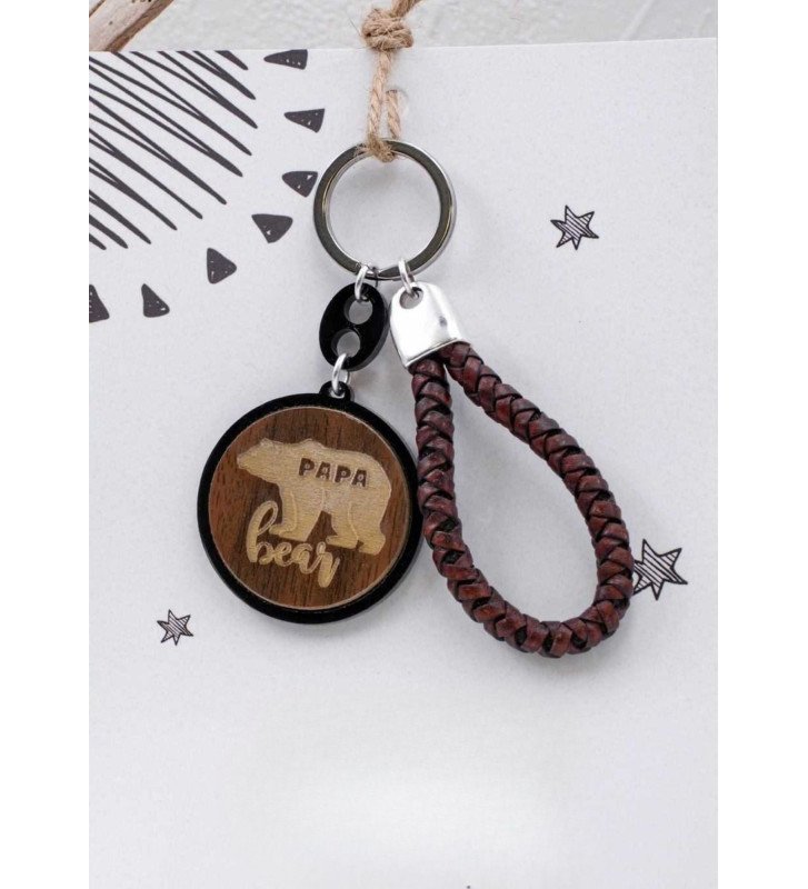 Handmade men's key-chain for with silver-plated parts and Papa Bear inscription